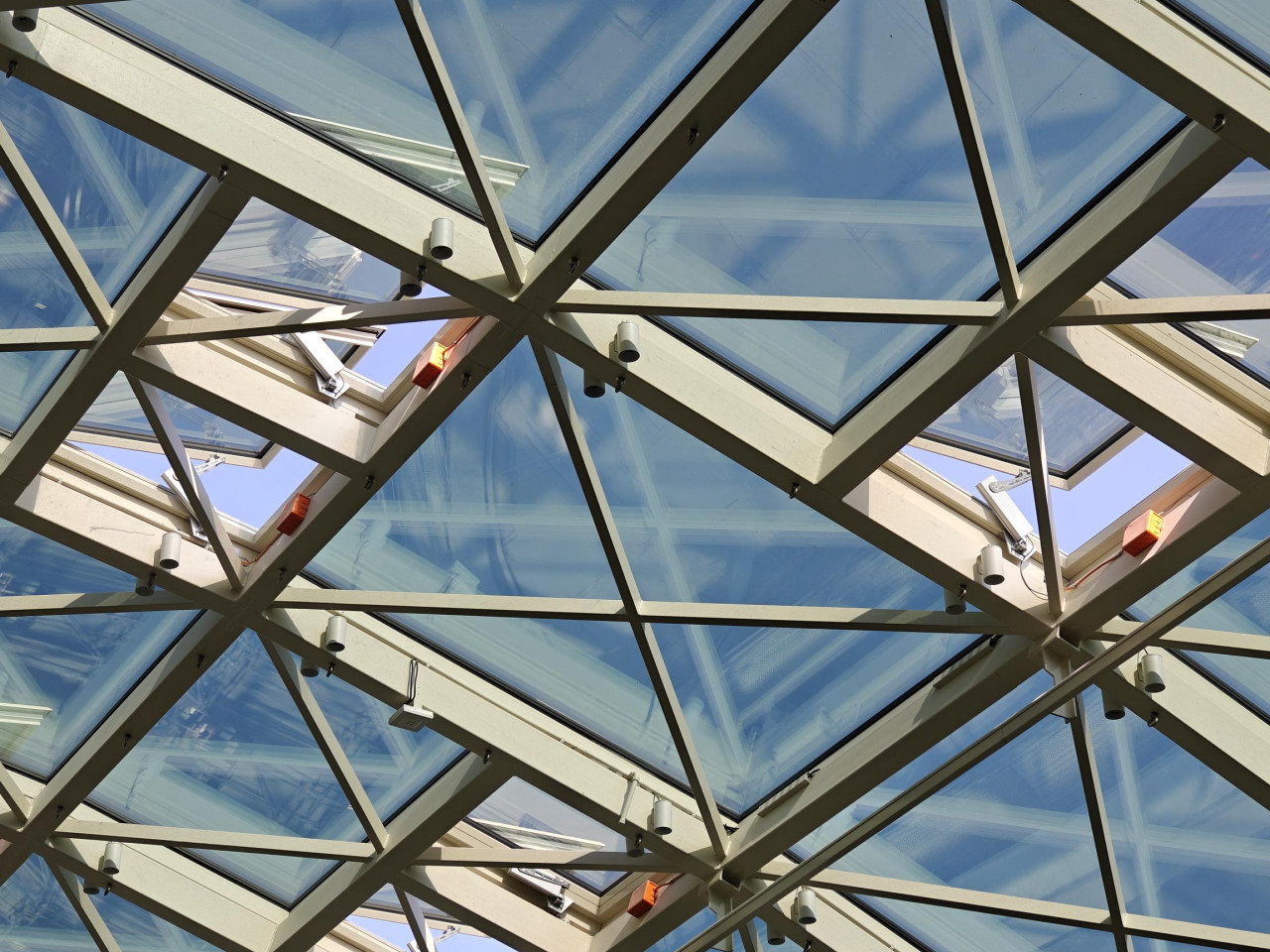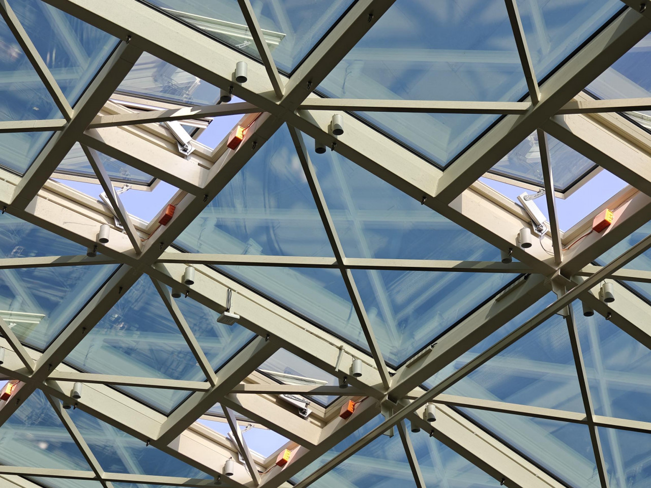 To ensure fire protection, we equipped the glass roof of the historic building with a total of 86 folding arms and the matching M-SHEV control centre. Thanks to the space-saving, visually appealing design of the folding arms, no design compromises are necessary. The actuators are certified as NSHEVs in accordance with EN 12101-2 and ensure natural smoke ventilation without additional mechanical ventilation - a perfect solution for the environmental concept.